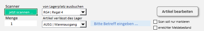 Per Scan werden Artikel eingebucht, ausgebucht oder umgebucht.