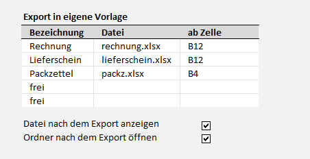 Export in eine eigene Vorlage (Rechnung, Lieferschein usw.)