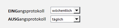 Sie können individuell festlegen, in welchen Zeitabständen ein neues, leeres Protokoll gestartet werden soll. Zum Beispiel lässt sich ein wöchentliches Protokoll für Wareneingänge und ein tägliches Protokoll für Lagerabgänge einrichten.