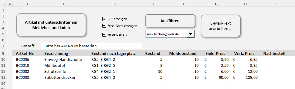 Den Inhalt der Tabelle verwenden Sie dann als Grundlage für Ihre Nachbestellungen.